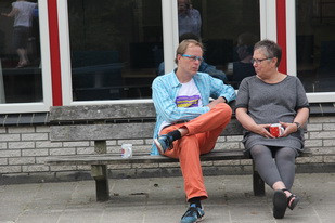 Juf Miranda en meester Bas op “vreemd terrein”, toezicht houdend tijdens de ochtendpauze. Dat het vreemde terrein maar snel het predicaat “vertrouwd” mag krijgen!