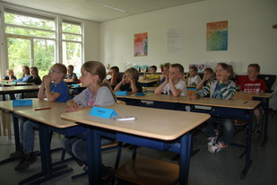 Nog even terug naar donderdag 3 juli jongstleden, de laatste schooldag van het schooljaar 2013/2014, maar voor de Samenwerkingsschool Noordhorn meteen ook de eerste van het nieuwe schooljaar 2014/2015! Geen oude groepen 8 meer van OBS De Molshoop en CBS ’t Kompas, die kinderen hebben een dagje extra vrij. De nieuwe groepen van de SWS krijgen les van het nieuwe onderwijsteam! WENNEN…. Dat wel, maar goed dat het kan vóór het begin van de zomervakantie!