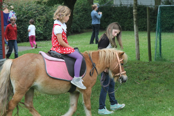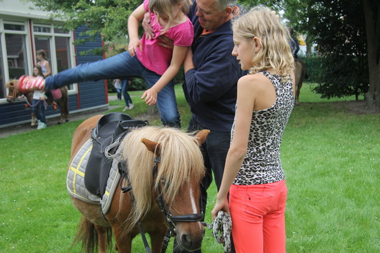 Hier waren we blijven steken, bij het pony rijden aan de zuidkant van de SWS. Lea heeft ervaring met pony rijden, ze ging graag een handje helpen….