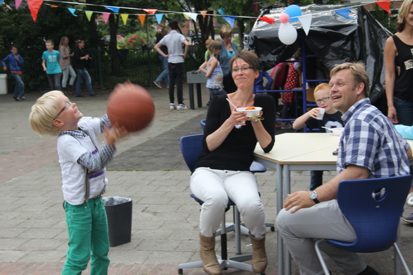 Terug naar de schoolontwikkelingen van de laatste weken/maanden…. Op vrijdag 27 juni 2014 kwam er feitelijk een eind aan het zelfstandige bestaan van zowel OBS De Molshoop als CBS ’t Kompas. ’s Morgens zette elke school afzonderlijk een dikke punt of uitroepteken achter haar bestaan… ’s Middags gingen alle kinderen van beide scholen naar ’t Spijkerdorp bij Drachten. Daarna was er vanaf half vijf een groots PLEINFEEST rond het gebouw aan het Hamsterpad met als een van de hoogtepunten een geweldig lopend buffet. (Nee, aan mij niet zo besteed, op die momenten krijg ik geen hap door mijn keel…) Kieken dan maar, de Canon hanteren… Eerder al twee afleveringen op deze weblog laten zien. NU het vervolg, deel 3: