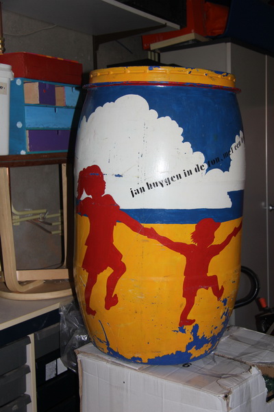 De conditie is verslechterd, maar nog steeds de moeite waard! De prachtige grabbelton, beschilderd door Dineke Boon! Heel wat jaren gebruikt tijdens de Floralia! (En een enkele keer bij een andere feestelijke gelegenheid).