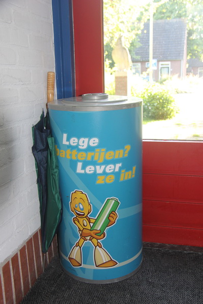 De bak voor lege batterijen bij de voordeur! Het inzamelen van de batterijen, wanneer begon dat nog maar? Een gezamenlijk initiatief van alle scholen? Er schemert iets van een competitie, maar het precieze herinner ik me niet meer. Wel dat er elk jaar lesmateriaal beschikbaar kwam op milieugebied, als tegenprestatie.