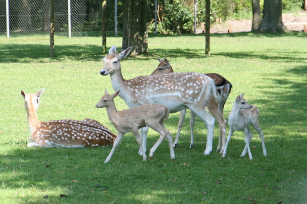 Sfeer in de hertenkamp achter de Noordwijkweg. Oase van rust, en van damherten, inclusief vier jonkies!