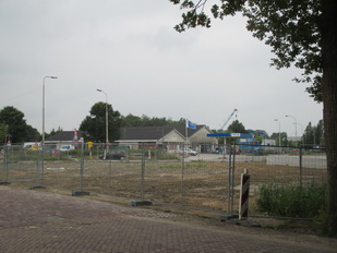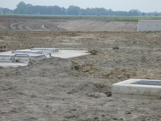 Ingezoomd… Links de pompkelder, rechts toegang tot de verlichting, op de achtergrond het tracé van de verlegde N355, waar de ondergrond wordt klaargemaakt voor de asfaltering die op maandag 11 augustus begint…