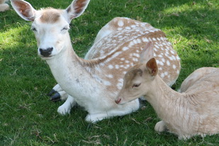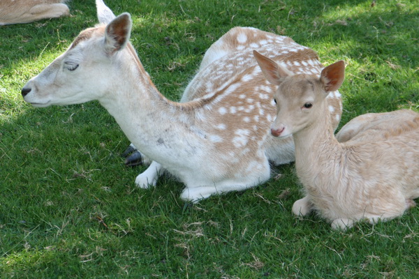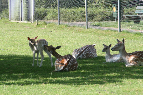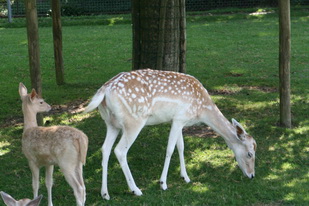 Andere leden van de damhertenfamilie, jong en oud…. In de schaduw van de bomen en regelmatig verplaatsend….