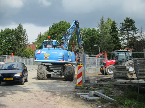 Een verkeersdrukte van belang op de ‘noodweg’ (en dan lopen er ook nog ‘kiekers’ rond….). Kraanmachinist Harrie Winters is ook terug van vakantie en heeft het met zijn ‘blauwe engel’ al weer druk als een echt GMB-baasje. Hier wat opruimen, daar wat verplaatsen, ophalen….. Harrie is er goed voor!