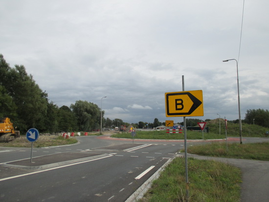 Als je vanuit het noorden de rotonde en het tunnelgebied nadert…..