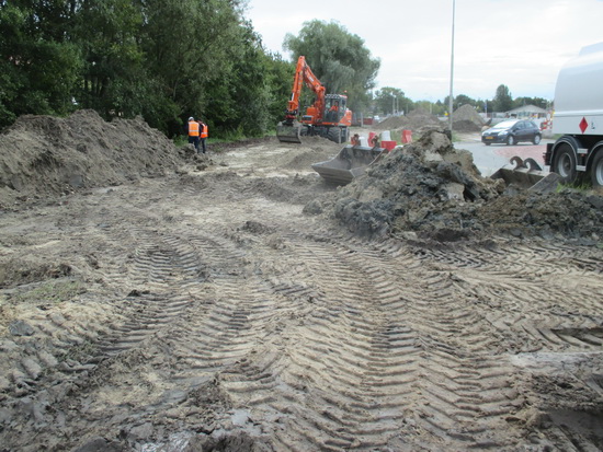 Ja, de waterleidingbuis wordt in deze richting gestuurd, ongetwijfeld met behulp van computers… Hier is van de oude N355 niets meer te zien, herinrichting landschap….