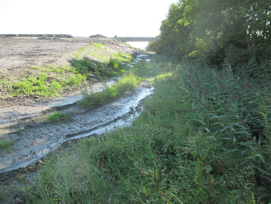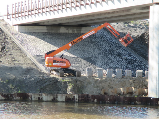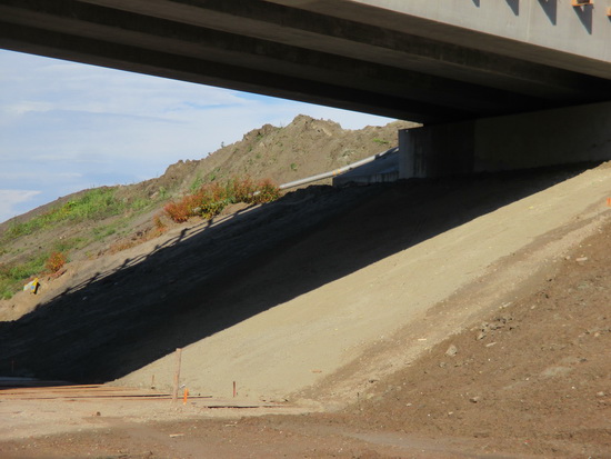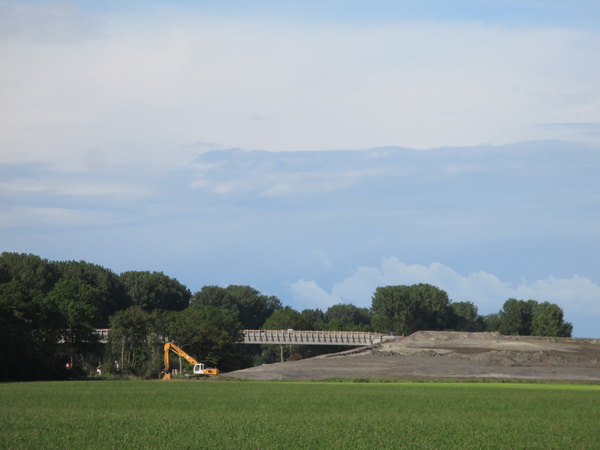 Het immense talud aan de noordwestkant van de NVH-brug. Hoeveel kiepauto’s baggergrond hier gestort zijn??!