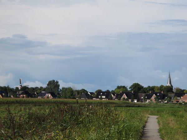 De oostkant van Noordhorn, tussen twee markante herkenningspunten: De molen en de kerktoren…