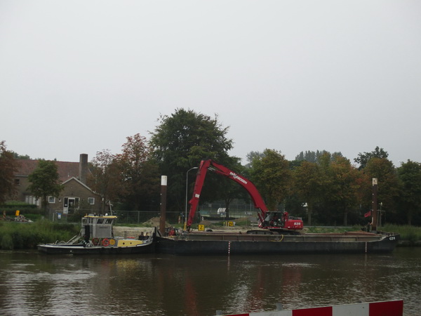 GMB is sowieso prominent vertegenwoordigd. Allrounder Henk Tippe is actief, na een week afwezigheid (Henk gaat zijn laatste Noordhornweek in…) en als ik het goed heb gezien is ook een jongere Haaksema actief, in GMB-verband. Wat de GMB hier doet? GMB is hoofdaannemer van het Project Noordhorn/Zuidhorn voor wat betreft de verruiming van de Vaarweg Lemmer/Delfzijl. Daar hoort ook bij het geschikt maken van het kanaal voor grotere schepen. De oude zinker ligt niet diep genoeg, vandaar….
