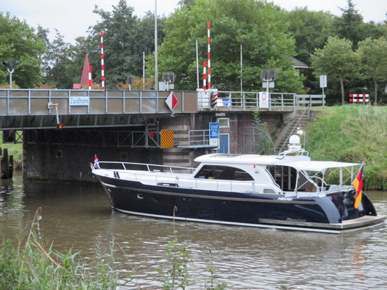 Woensdagavond 10 september…. Soms is het moeilijk te beoordelen of een boot onder de brug door kan…. Deze Duitse pleziervaarder bijvoorbeeld. Een geval van net niét…….