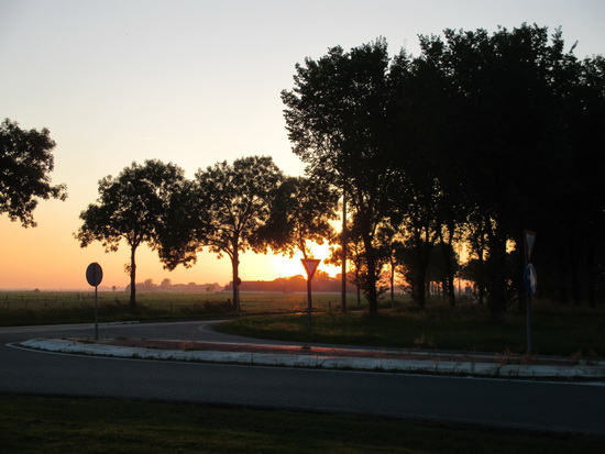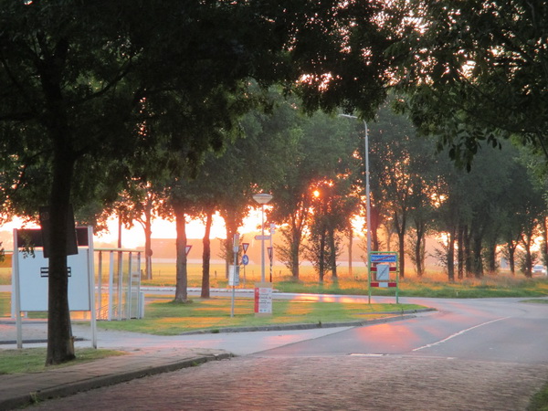 En de neergaande zon? Zit hier achter het verkeersbord…