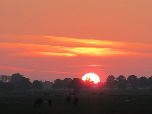 Foto’s van gisteravond met een bijzondere zonsondergang! Vandaag de dag van de Noordhorner Rommelmarkt in en achter “De Wegwijzer”, Open Monumentendag met interesse voor molen “Fortuna” en een gesloten Doopsgezinde Vermaning, wegens omstandigheden, kijkdag bij Hoeve Veilingen…. Verveling? Geen kans!