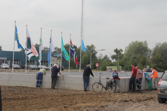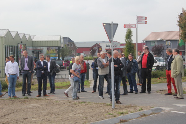 Een groeiende schare belangstellenden aan de noordkant van de rotonde. Waar moeten we langs??!