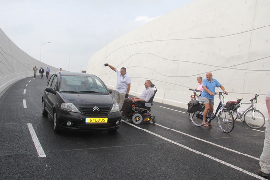 Wandelaars kwamen er uit de tunnel, vanmiddag om kwart over twee. Nee, nog geen auto’s. Het is rustig, ik ga een tunnelommetje maken over de ‘noodweg’…