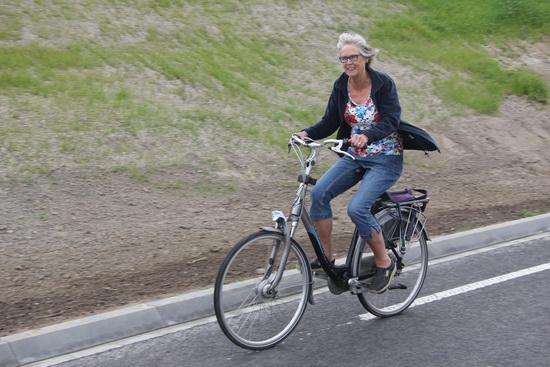 Ach, dit is een mooie plaat! Langestraatbewoonster Geertje Nanninga in perfecte fietsstijl op de terugweg naar “Gluphörn”… (Ik oefen wat extra…)