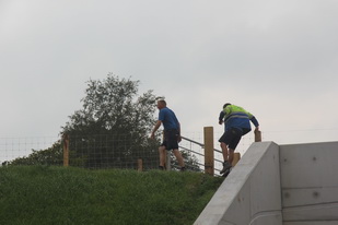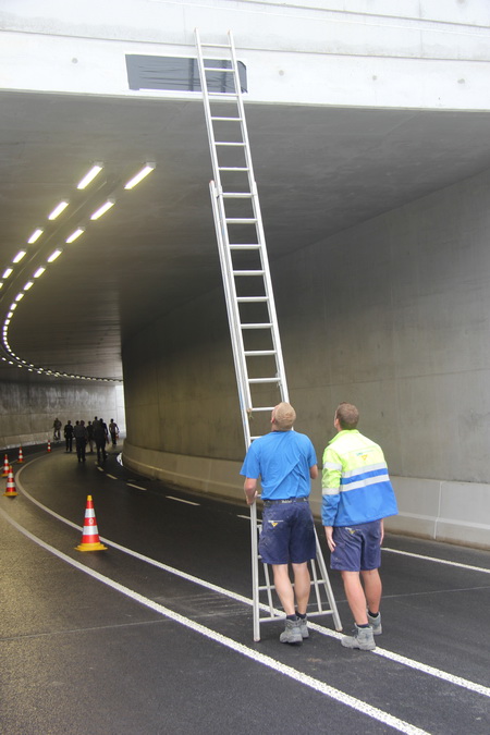Arjan en Rick hebben een gezamenlijke opdracht. Ze zetten een lange ladder in elkaar en gaan vervolgens de naam aan de oostkant van de tunnel onthullen! Jammer dat hier aan deze kant weinig publieke belangstelling is… Of had Yvonne Arnst deze twee van GMB ook wat toeters mee moeten geven?