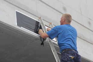 Eerst even dacht ik aan medewerkers van de AIVD die de opdracht hadden gekregen om het spandoek bij Benny Kok te verwijderen, maar nee, het zijn GMB-voorman Arjan (Hooikammer) en zijn maat gedurende deze laatste Noordhorner weken Rick (van Buiten). Ja Arjan, je hebt gelijk, er zijn nu eenmaal werkpaarden en tuigpaarden, maar zoals je al zei, “Liever de broek smerig as….” (Het laatste verstond ik niet precies, maar dat komt door mijn slechter wordend gehoor…)