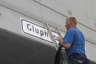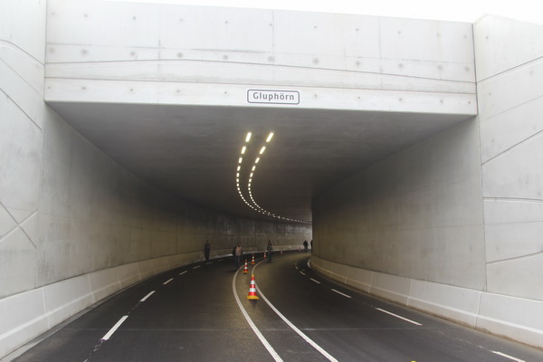 Wat aan de noordwestkant de inspanning vergt van een viertal krachtpatsers uit de bovenste bestuurslagen, gebeurt aan de oostkant ‘lopiesweg’ door een nuchtere GMB-voorman Arjan, met grondondersteuning van zijn maat Rick. Zelfde resultaat: Ook aan deze kant heet de tunnel “Gluphörn”….