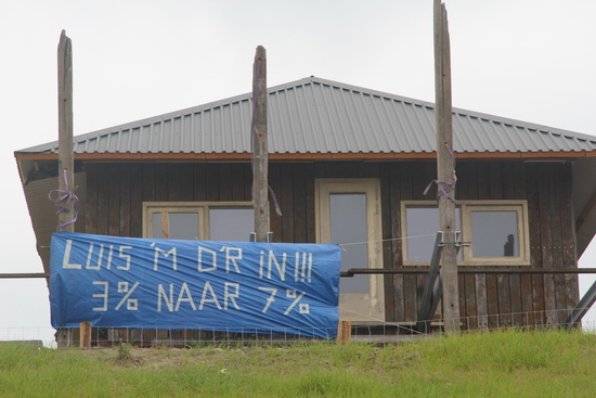 Aan de zuidoostzijde van de tunnel toch een stil protest! Benny Kok vindt het een “Luis ‘m d’r in!” Waar zijn percentages op slaan? Nee, heeft niets met de Onroerend Zaak Belasting te maken, voor zover ik weet. En de steilere helling richting de rotonde? Dan kloppen de percentages niet…. Een onverwachte bezienswaardigheid is het wel…