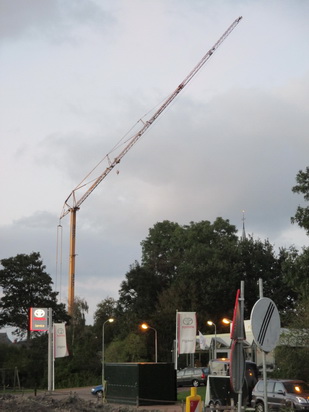 De gigantische kraan in de Langestraat, nee, die kon niemand over het hoofd zien… Het middengedeelte van de Langestraat was anderhalve dag gestremd. Ook vanaf het fietspad langs de N355 was de blikvanger duidelijk in beeld. (Foto maandagavond 22-09-2014)