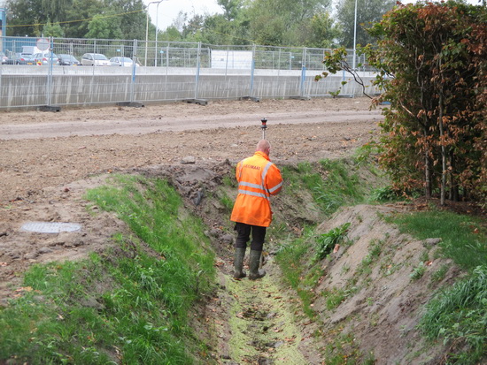 En Geomaat blijft zijn apparatuur richten naar alle meetbare kanten….