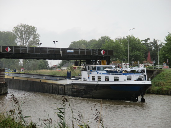 Ik loop via de Industrieweg naar het kanaal en dan richting brug. Zie aan de overkant op uitgebreide schaal werkzaamheid van kabel- en buizen(ver)leggers, alles ter voorbereiding van de vervanging van de huidige, krakende tafelbrug, in 2015.