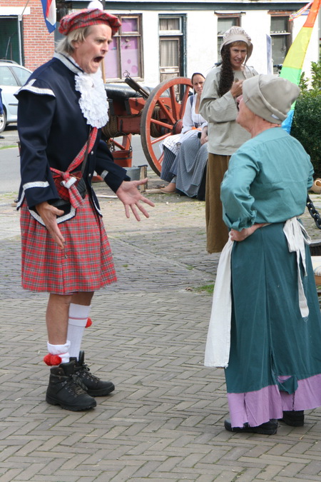 De Schot gaat maar door met zijn prachtige volzinnen, maar de molenarin wil maar een ding weten: Wat zit er onder die kilt???! (Boertigheid is van alle tijden…)
