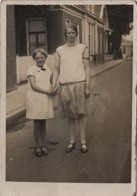 Wie is het meisje links??! Ik heb hier en daar nagevraagd en het meest waarschijnlijke is dat het gaat om Thea Leujes, enige dochter van het echtpaar Leujes van het gelijknamige café, nu “De Gouden Leeuw”. Reacties zijn natuurlijk van harte welkom! (JanBlaauw@hetnet.nl)