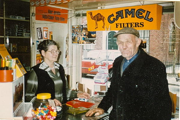 Actueel en toch duidelijk ‘Noordhorn Toén’, deze foto. De winkel van Aaltje Visser-van der Sluis, rookwaren met name, maar ook veel andere ‘goederen’, van snoep tot strippenkaarten. Treffend beeld van een voorbije tijd, al is de ‘Pinggg-kassa’ onzichtbaar. Wanneer de foto is genomen? In ieder geval voor het definitief sluiten van de winkeldeur na de derde inbraak op rij, waarbij een onbekend gebleven persoon ingrijpend spotte met het verschil tussen mijn en dijn… 1998? Als je 89 bent en dan nog deze terugkerende misère op je bord krijgt, terwijl je zelf in het ziekenhuis ligt, dan heb je ’t gehad, je bent het zat, genoeg gegeten en gedronken. ‘Vrouw Visser’ vond het wel spijtig, ze miste haar ‘hangklanten’. Zoals hier kweker Klaas van Dijk, van de Noordwijkweg, die niet alleen kwam voor zijn sigaartjes (Elisabeth Bas?), maar ook voor het niet van een prijskaartje voorziene praatje. Zie het gezicht van de al weer geruime tijd geleden overleden druivenkweker, authentiek passend in deze dorpswinkelsfeer. En kijk naar die stijlvolle vrouw achter de toonbank, te midden van kauwgomballen, pakjes shag en Stimorol, belicht door Agfa-Gevaert en Camel filters, met het plaatje van de ‘verkeerde kameel’. (De ansichtkaartenstander is nauwelijks zichtbaar achter de rug van klant Klaas). Deze sterke vrouw, geboren in februari 1909, overleed eind oktober, 105 jaar oud, na een kort ziekbed. Overgegaan van ‘Noordhorn Nu’ naar ‘Noordhorn Toen’, al realiseer ik me dat nog steeds niet ten volle. Aaltje van der Sluis kende bewogen jeugdjaren met diverse woon- en werkplekken. Vaak was het gezin gedwongen te verhuizen, omdat pa Pieter bij een nieuwe boer aan de slag ging. De kinderen sjouwden mee…. Toen dochter Aaltje in de huishouding kwam bij weduwnaar Anne Visser en zijn zoon Jacob, was het gedaan met het zwervende bestaan. In 1934 trouwden Job en Aaltje, nauwelijks gehinderd door de in puin gereden voorgevel van de Langestraat 75. (Een GADO-truck kwam op bezoek…) Aaltje Visser-van der Sluis bleef deze plek trouw, ook na het overlijden van haar man, kapper Job Visser, in 1974 en ook na het definitief op slot draaien van de winkeldeur (“Bezoekers achterom”). Aaltje Visser overleed op 29 oktober jongstleden, een sterke, maar vooral ook warme persoonlijkheid! Noordhorn Toén! (JB)