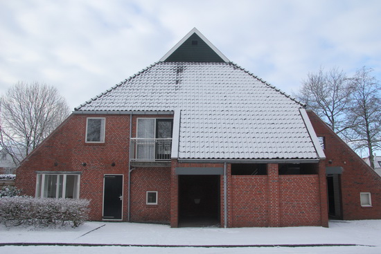 Huize Kok, voorheen de Chr. MAVO… Links het nieuwe gedeelte, want de familie Kok wil ‘kleiner’ wonen… Het gereedkomen van de balustrade en de garage daaronder wacht op de nabije lente….