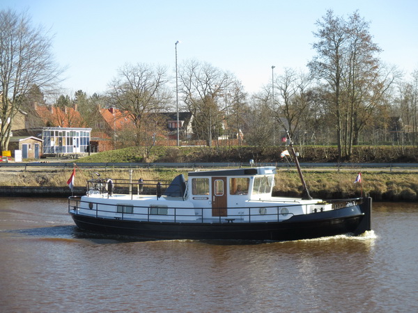 Nee, niet alleen goederenvervoer via het Van Starkenborghkanaal. Hier een soortement ‘kajuitschip’, mooie boot!