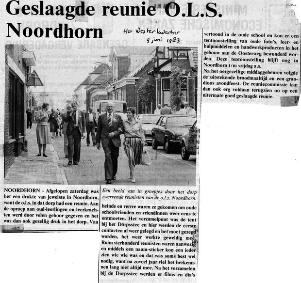Een artikel uit “Het Westerkwartier” van 9 juni 1983 over de toen georganiseerde reünie rond de O.L.S. Noordhorn, geslaagd, zeer zeker.