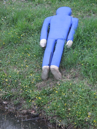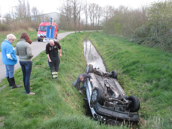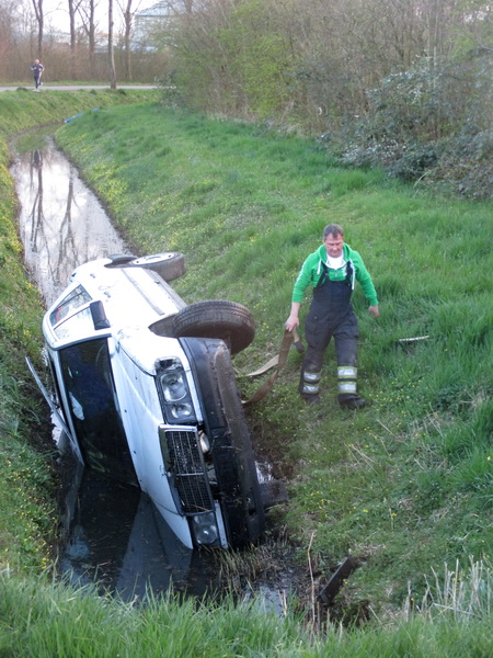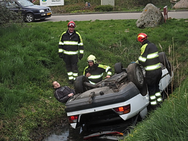 Mijn eerste gedachte was wel: O jee, auto in de sloot, hoe kan dat nou??! Maar toen bleek al gauw dat het om de voorbereiding van een brandweeroefening ging….
