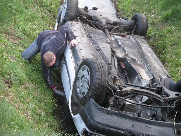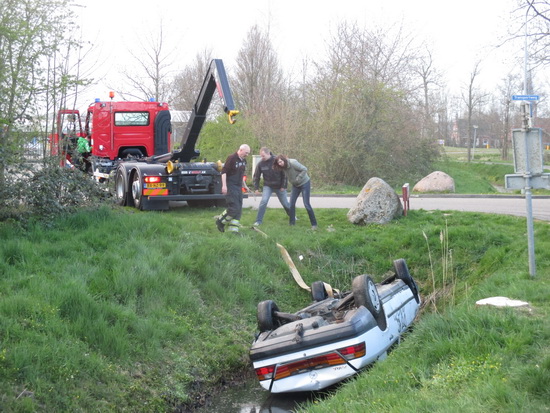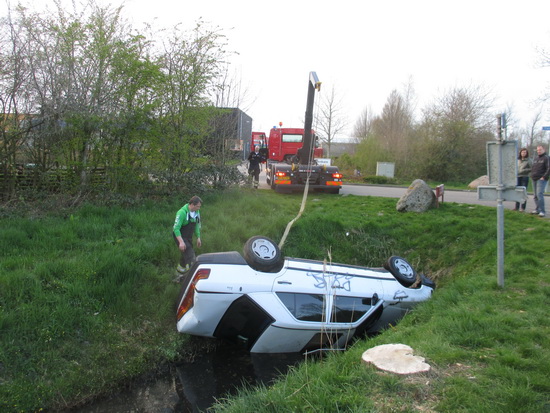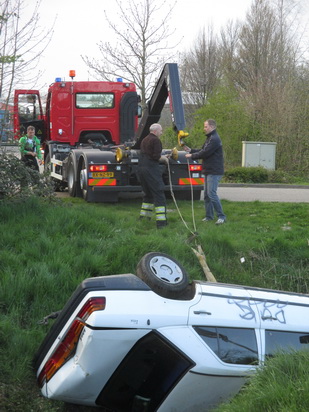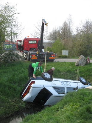 Verderop ligt een slachtoffer aan de overkant van de sloot, zit niet veel leven meer in…. Rechts de auto die “fikklaar” wordt gemaakt…