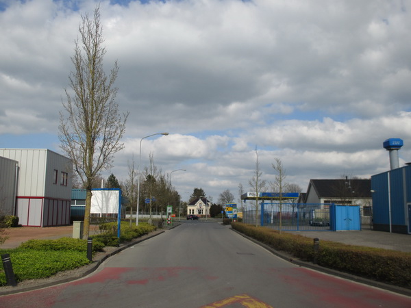 De Industrieweg vanaf de driesprong met de Transportweg. In de verte het woonhuis van Lammert Kruizinga (en zijn vrouw), achter het tunneldek.