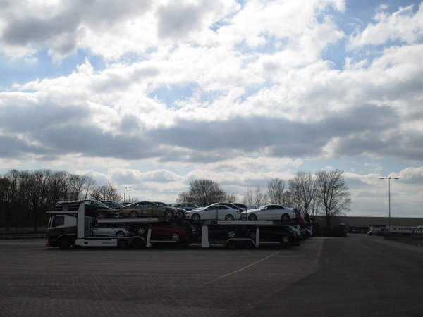 Zondagopstelling bij Koopman Transport. Niet alles hier meer op een rij, een deel van de transportwagens staat nu rechts op de achtergrond, voorlopig ruimte genoeg.