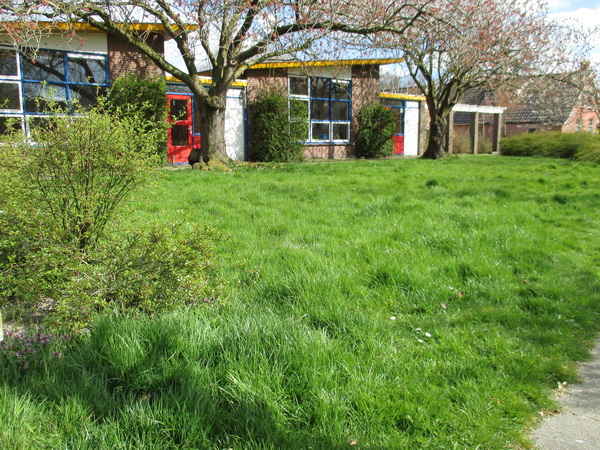 De straatkant van de voormalige OBS De Molshoop, waarin nu de “LEIS Westerkwartier” bivakkeert. Het gras is groener dan ooit, maar of deze wildgroei het aanzien van het geheel bevordert….. (Voor alle duidelijkheid: LEIS Westerkwartier heeft de verantwoording binnen het gebouw, de gemeente Zuidhorn zou het buitenterrein verzorgen…)