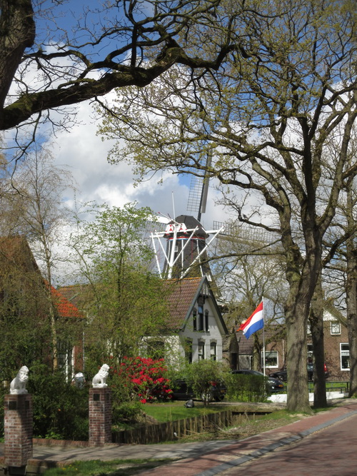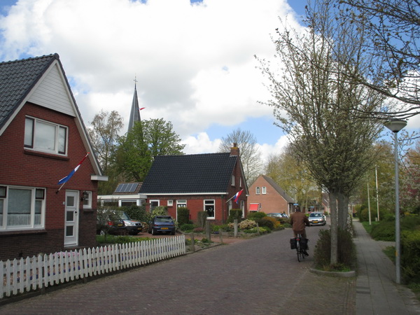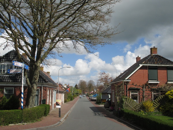 De Langestraat (Midden), richting molen “Fortuna”, met helaas vele auto’s….