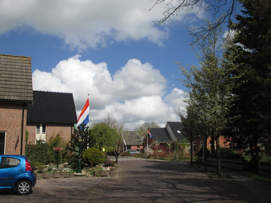 Start bij eigen huis aan de Verlengde Oosterweg, met vlag en wimpel, van de buren!