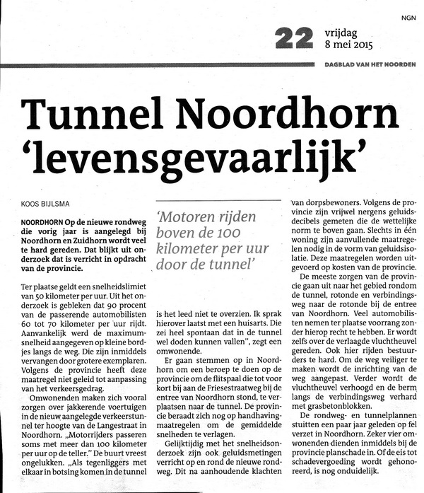 NOORDHORN: DvhN-artikel: “Tunnel ‘levensgevaarlijk’!”