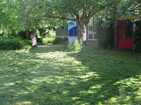 Frans van der Veen kan zaterdag 13 juni a.s. een schoon en fris “Welgelegen” laten zien aan de reünisten van de OLS/OBS De Molshoop en Nutskleuterschool! En bij het gebouw waarin de OLS/OBS van 1956 tot 2014 gehuisvest was, is nu eindelijk het hoge gras gemaaid…