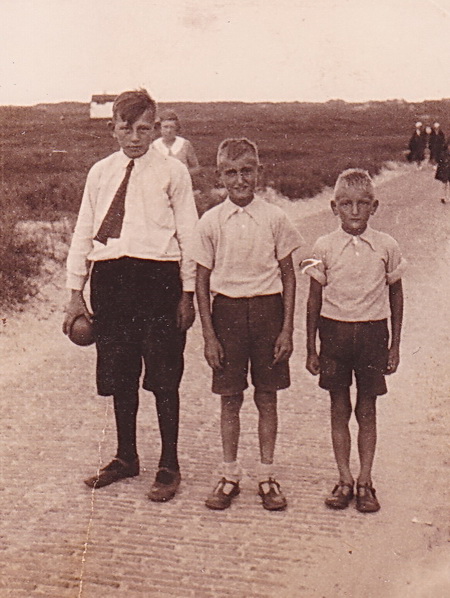 Een sprekende foto van het drietal Feike Zuidema, Jan Willem Burgler en Melis Burgler. De lichaamslengte en de broekspijpen geven ritme aan het beeld… Waar de foto is genomen? Het doet me denken aan een van de Waddeneilanden….