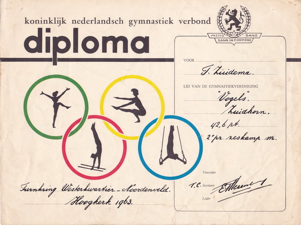 Twee diploma’s die Tineke Zuidema als lid van “De Vogels” haalde in ’63 en ’64