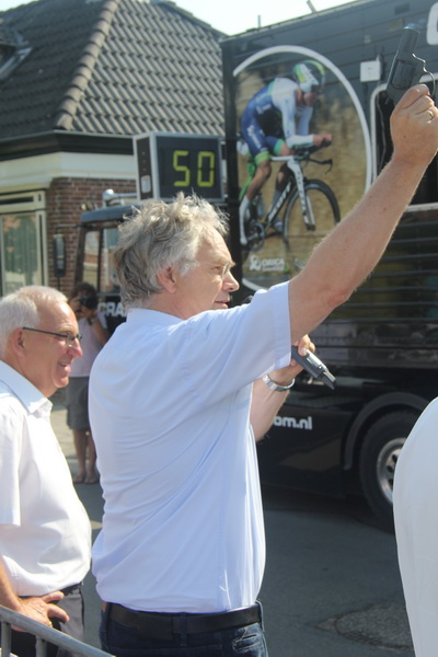 Aha, hij is er, de beoogde schutter bij de start: Burgemeester Bert Zwart! (Stond zeker enige tijd aan de verkeerde kant van de brug te wachten….)