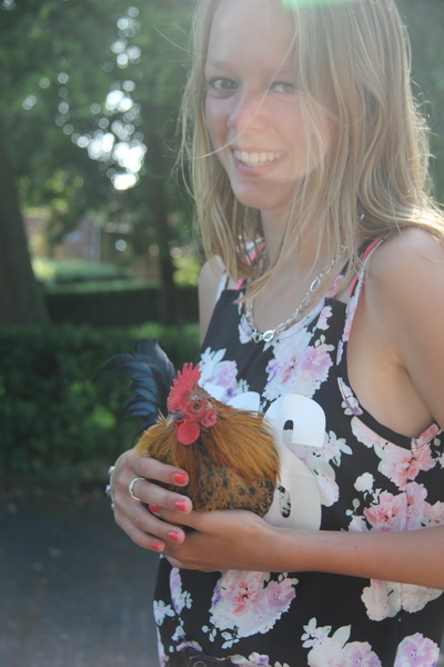 Zelfs het haantje wil even zien wat er aan de hand is… (Sorry vanwege dat reflectierondje op het gezicht…)