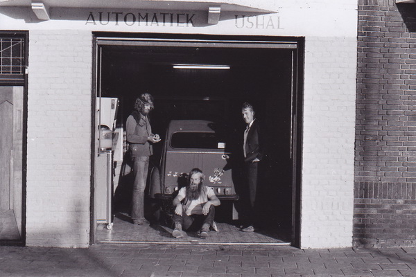 Nog een kiek met dezelfde mensen bij de genoemde hal. Begin jaren zeventig.