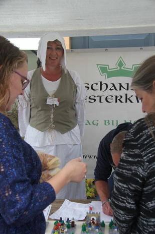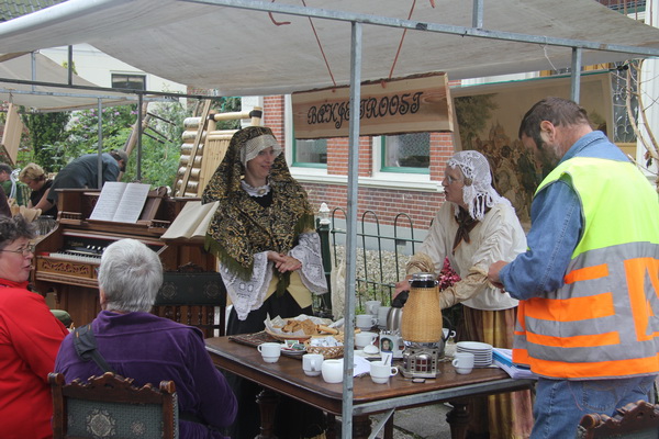 Hé, kijk eens, links: Marijke Bos, bestuurslid Dorpsbelangen, had haar bijna niet herkend! En rechts boekenman Paul Wildeboer als deelnemer aan de Historische Markt!