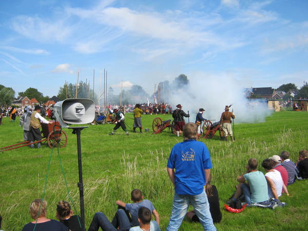 De aanleiding voor de ‘reanimatie’ van de Slag bij Noordhorn is en blijft de 125ste verjaardag van koren- en pelmolen “Fortuna”. Daar beginnen we mee in deze reeks foto’s die ik niet zelf maakte. Gé ging al vroeg op stap met de lutje Canon 1 die ze van mij heeft overgenomen. Openingsmuziek van de Slag-activiteiten, daarna beelden vanaf de rand van het strijdperk. De laatste zaterdag-kiekjes: